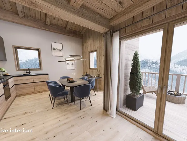 En exclusivité chez Athena Advisers, cette résidence intimiste de six appartements prendra place dans un nouvel immeuble édifié dans le plus pur style savoyard, avec une façade alliant harmonieusement bois et pierre. Les intérieurs feront également la part belle aux touches alpines authentiques, notamment avec des murs et plafonds habillés de bois.