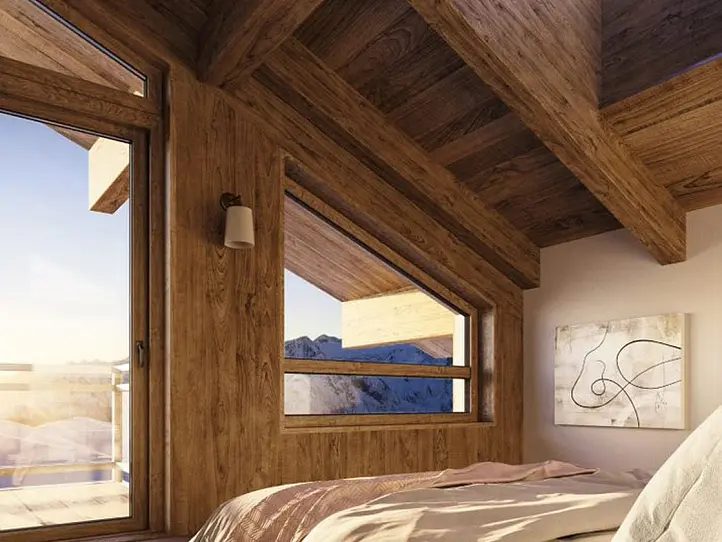 Experience the charm of regional chalet architecture in our collection of 30 apartments, each with its own balcony. Nestled within two new buildings, the traditional facades boast local stone, natural-coloured plaster, and larch wood cladding. Ranging from 50 to 166 sqm, the apartments feature parquet flooring and wood cladding on select walls, creating a cozy alpine atmosphere. Large windows let in the abundant sunshine and showcase stunning views of Alpe d'Huez.