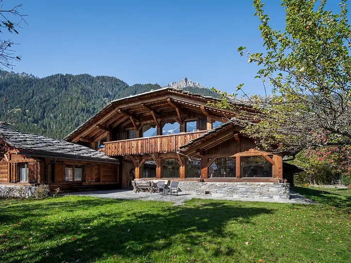 An exceptional double chalet built to the highest standards, set in one of Chamonix’s most sought-after locations, with uninterrupted panoramic views stretching from Col de Balme to Mont Blanc and Le Brévent.