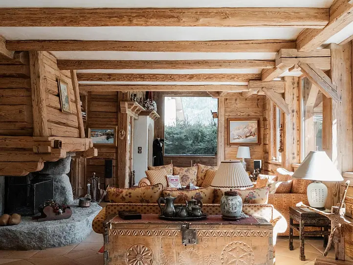 While the property features traditional Alpine exteriors, the interiors offer two distinct styles: one showcases aged wood throughout, whilst the other presents refined, high-quality timber finishes.