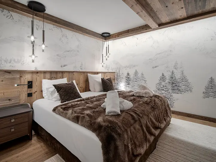 Our development comprises a mix of new-build and renovated apartments and chalets, all finished to the highest standards using only the finest materials. The interiors seamlessly blend contemporary comfort with traditional charm, featuring parquet wood flooring, wood panelling on the walls, and open-plan living areas with cosy fireplaces. Large windows flood the properties with natural light and offer stunning views over the picturesque Epaule du Manchet Valley.
