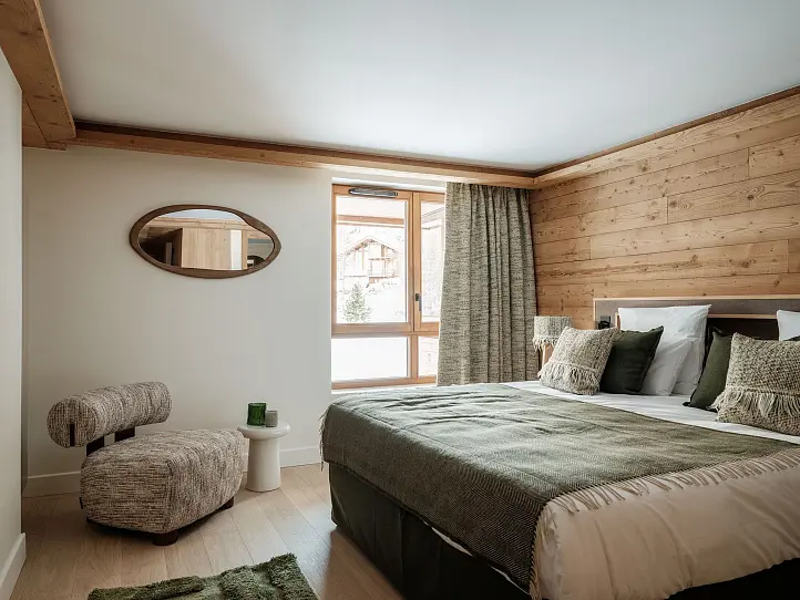 L'Ecrin is a stunning collection of 23 spacious apartments, paying homage to local architecture with traditional materials such as local stone, larch wood cladding, and slate roofing. Each apartment features large windows and exterior space with breathtaking views of Solaise, Fornet, and Col de l'Iseran. The interior design offers a choice between traditional Alpine or contemporary styles, and all residences are sold fully furnished and equipped. Perfect for families, nearly all apartments include a bunk bedroom. L'Ecrin also boasts elegant communal areas, including an igloo-inspired reception and a wellness area with a spa, gym, and swimming pool. Ski lockers, cellars, and parking are included.