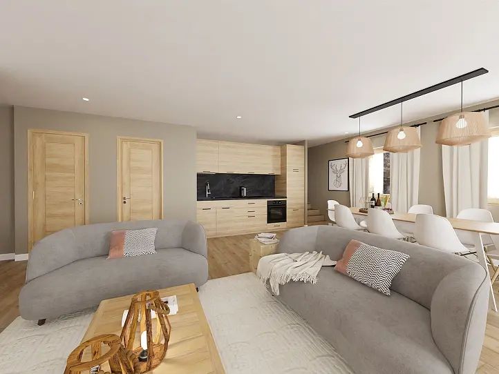 La Toussuire is getting a stylish upgrade with the arrival new buildings that raise the bar for the resort. This new project of 30 apartments will blend in with the surrounding architecture. The chalet-inspired facades are clad in natural stone and wood, while the interiors boast parquet flooring, modern kitchens, and a calming palette of light shades. Large windows and glass doors flood the apartments with natural light and offer stunning views of the mountains. Each apartment also comes with a balcony or terrace, perfect for sipping coffee before hitting the slopes or enjoying sunset drinks with loved ones.