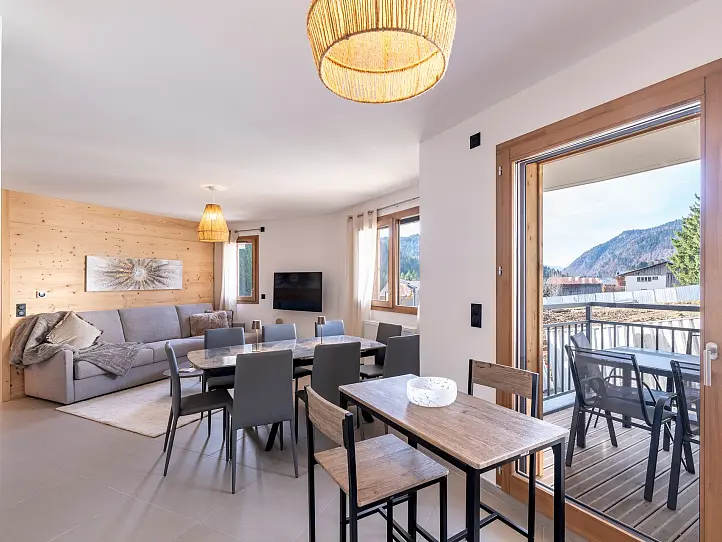 Just 350m from the nearby Perrières chairlift, the residence will towards the village with lovely views of the Chavannes slopes. Sheltered from the bustle in the centre of the resort, delightful local restaurant La Fruitière des Perrières is right on your doorstep while a bus stop for the free shuttle to and from Les Gets is only a couple of minutes walk away from the residence.
