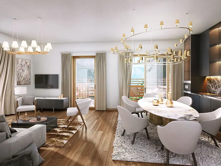 This exclusive 20-unit development features units ranging from 2 to 5 bedrooms, each with additional cabin space. The property boasts high-end finishes, including fully-equipped kitchens and luxury touches throughout. Expansive outdoor areas offer spectacular views in every direction, while underground parking, private cellars, and ski lockers provide added convenience. With construction already underway, this residence combines modern living with the charm of the Alps, set to be completed by Q2 2026.