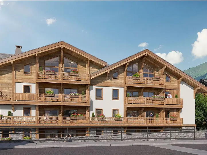 The development features two exceptional penthouses and one spacious 5-bedroom apartment. Each penthouse offers expansive living areas, with 3 bedrooms, a bunk-room, and a large mezzanine that can be used as an office, kid’s space, or extra bedroom. The 5-bedroom apartment benefits from triple exposure and has balconies on all sides. Chalet-style architecture, with XL balconies and woodcarved balustrades, enhances the charm, while the high-end finishes reflect the craftsmanship of Morzine’s largest developer.