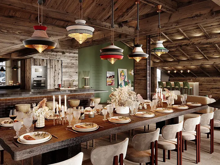Experience the perfect blend of authenticity and modern comfort in these stunning residences. With contemporary Alpine interiors featuring wood paneling, parquet flooring, and large glass windows, natural light floods the space. The traditional Alpine-style facade boasts wood cladding, natural stone, and a gabled roof with multiple apexes, creating cathedral-style ceilings in the top-floor properties.