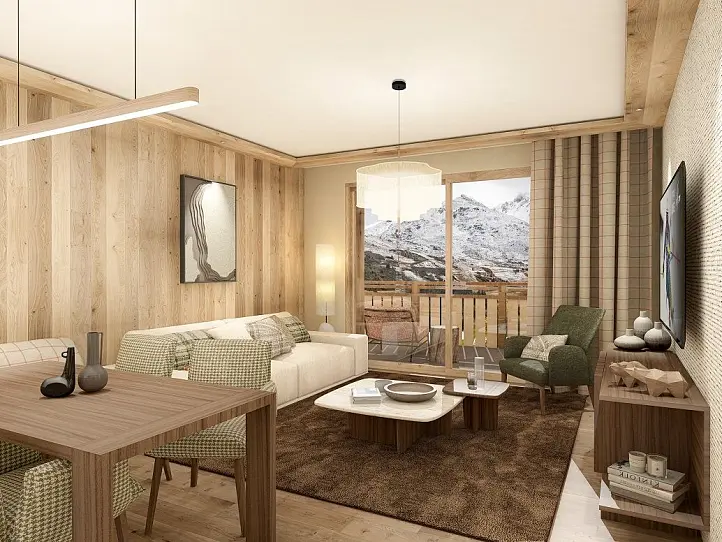 The residence offers 1 to 6-bedroom apartments and penthouses, ranging from 33 to 209 sqm. All units boast generous outdoor spaces and open views over the slopes or surrounding forest. Owners benefit from hotel-style services, including a wellness area with pool, sauna and gym, plus a bar, restaurant and cinema room. Each apartment includes a ski locker, cellar and underground parking.