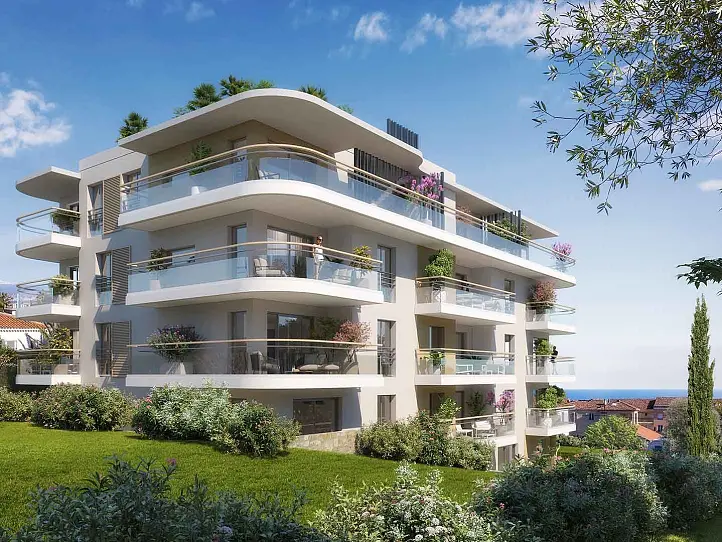 On the top floor of the building, several exceptional apartments feature private solariums and 180° views, serving as outdoor living spaces that invite residents to fully enjoy the unique horizons of the French Riviera.