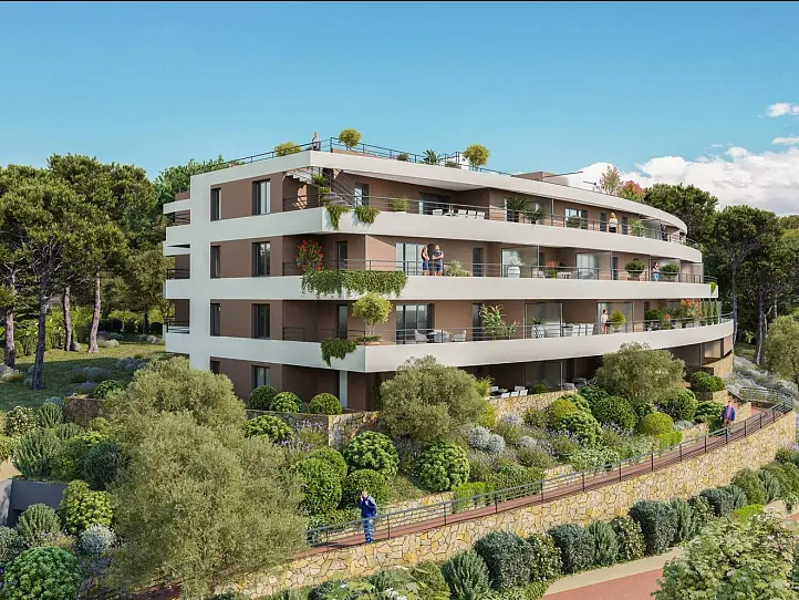Welcome to Vert Azur, a modern new residence set in a tranquil, tree-lined park in the heights of Antibes, where Mediterranean living is paired with exceptional comfort and panoramic views. Nestled within a lush natural setting, this elegant development offers a collection of high-quality apartments—many with breathtaking sea views or serene green outlooks over the surrounding pine forests.
