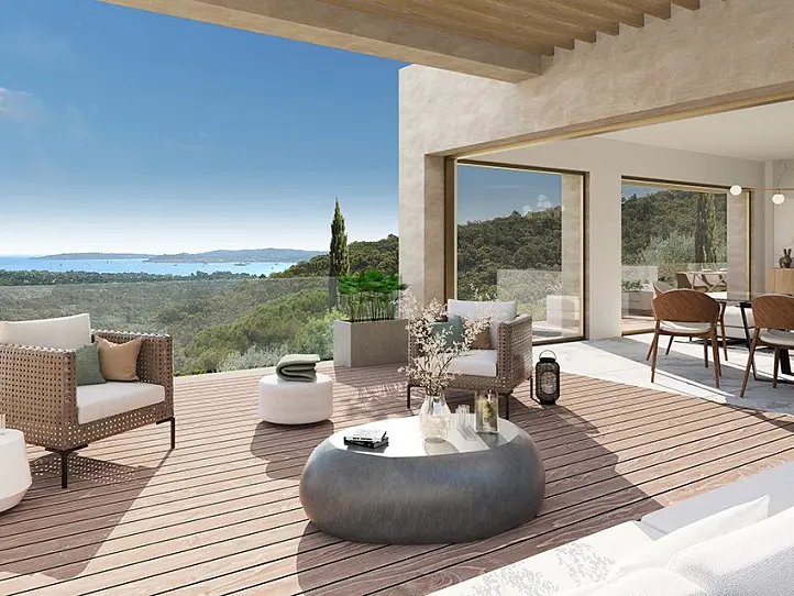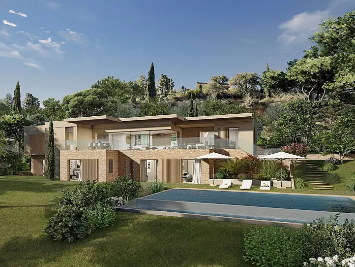 Occupying an elevated location, just outside of the Avelan neighbourhood, these brand-new villas offer a peaceful and private location with panoramic views over the Gulf of Saint-Tropez. From here, the beach and Port Grimaud, a charming port often called the Venice of the Côte d'Azur, are a 10-minute drive away. The charming centre of Grimaud is slightly closer and along its cobbled, winding streets you will find a good selection of restaurants and shops as well as a bakery and a pharmacy.