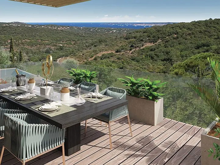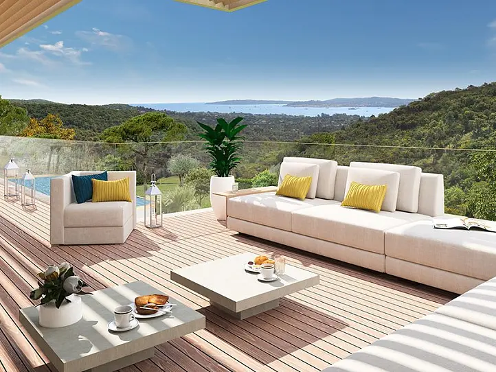 Occupying an elevated location, just outside of the Avelan neighbourhood, these brand-new villas offer a peaceful and private location with panoramic views over the Gulf of Saint-Tropez. From here, the beach and Port Grimaud, a charming port often called the Venice of the Côte d'Azur, are a 10-minute drive away. The charming centre of Grimaud is slightly closer and along its cobbled, winding streets you will find a good selection of restaurants and shops as well as a bakery and a pharmacy.