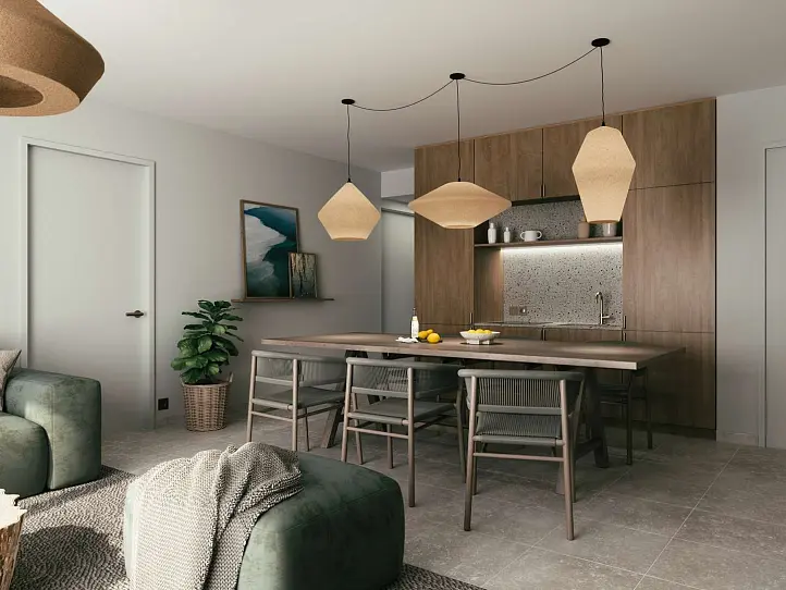 The communal areas are stylish and secure, with lacquered steel entrance doors, decorative tiled floors, motion-sensor lighting, and modern 8-person lifts. Residents will also benefit from a large outdoor swimming pool, Mediterranean-style gardens and bicycle storage within the building.