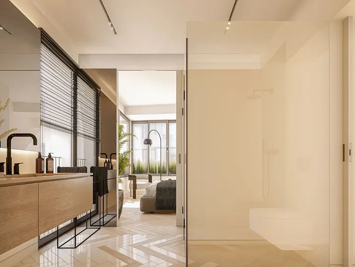 In the bustling heart of the city, this development provides a serene oasis with its stunning 180 sqm communal garden, featuring a stream and a lush patio. Additionally, residents will enjoy amenities such as a swimming pool, a meditation/fitness area, and a business centre, which can also serve as a reception room for special events.