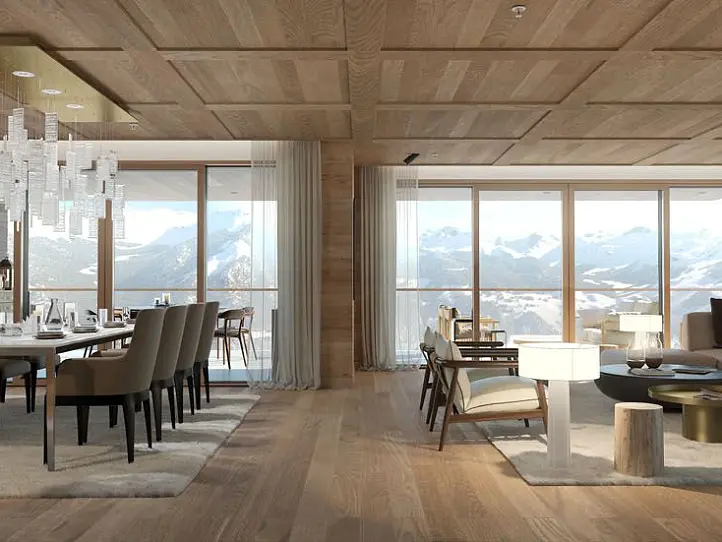 Experience luxury living in these spacious properties ranging from 220 to 241 sqm. Featuring en-suite bedrooms, open-plan living areas, and terraces with three orientations, these properties blend traditional alpine design with high-end finishes using local noble materials. Sustainability is a top priority, with eco-friendly or recycled materials used wherever possible. Customize your home with the help of an interior designer to reflect your unique personality. Enjoy access to Six Senses Crans-Montana's on-site facilities and services, including two restaurants, concierge service, a spa and fitness center, and a business center. Live your best life in these exceptional properties.