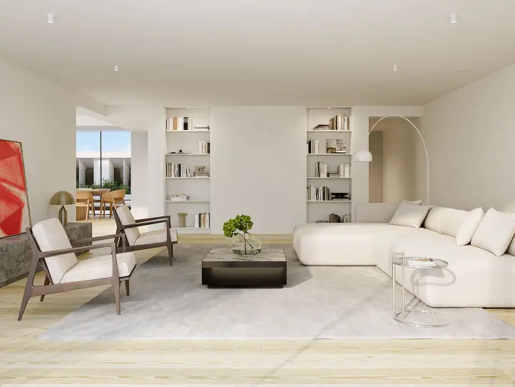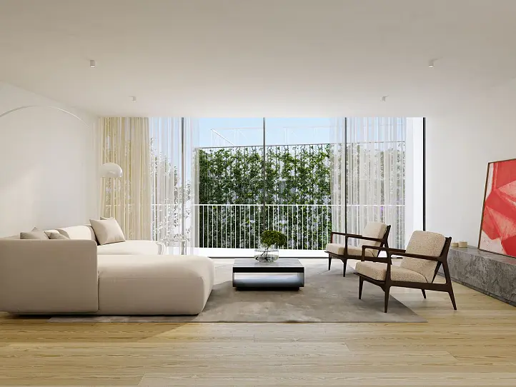 Cada residência no Avenida Valbom 20 apresenta uma qualidade de construção excecional e materiais refinados, tais como pavimentos em madeira de carvalho, eletrodomésticos Miele, superfícies Corian e acabamentos em pedra de primeira qualidade. O empreendimento inclui apartamentos de um quarto, residências de dois quartos com generoso espaço exterior e uma penthouse exclusiva de três quartos com acesso privado por elevador e terraço panorâmico no telhado. Resistentes a sismos e com certificação energética de Classe A, estas casas oferecem conforto moderno e privacidade num edifício que reflete o prestígio da sua localização.