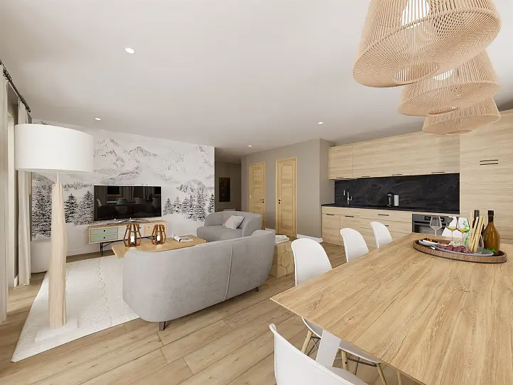 La Toussuire genomgår en stilfull uppgradering med nya byggnader som höjer standarden för skidorten. Detta nya projekt med 30 lägenheter kommer att harmoniskt integreras med den omgivande arkitekturen. De chaletinspirerade fasaderna är beklädda med natursten och trä, medan interiören bjuder på parkettgolv, moderna kök och en harmonisk färgskala i ljusa toner. Stora fönster och glasdörrar fyller lägenheterna med naturligt ljus och erbjuder en fantastisk utsikt över bergsmassiven. Varje lägenhet har även en egen balkong eller terrass, perfekt för en kopp morgonkaffe innan skidåkningen eller en stunds avkoppling i solnedgången med nära och kära.