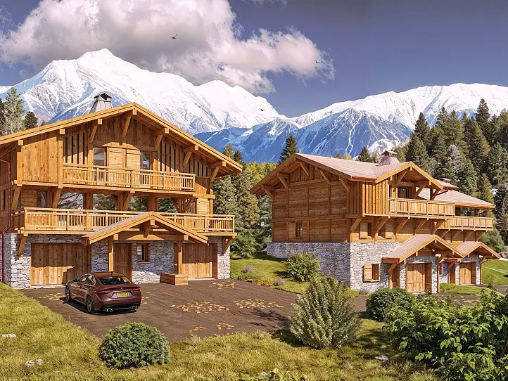 Dessa tre- och fyrbäddsrumsstugor på 131 till 213 kvm är byggda i tre plan med traditionell stolpkonstruktion av en känd lokal byggare. Designad i klassisk alpin stil med furu, sten och sluttande tak, har varje chalet katedraltak, parkettgolv och expansiva terrasser på upp till 30 kvm. De ljusa och välkomnande vardagsrummen med öppen planlösning översvämmas av naturligt ljus via takfönster och stora skjutdörrar, och varje fastighet har också ett garage, en privat trädgård och golvvärme i hela huset.